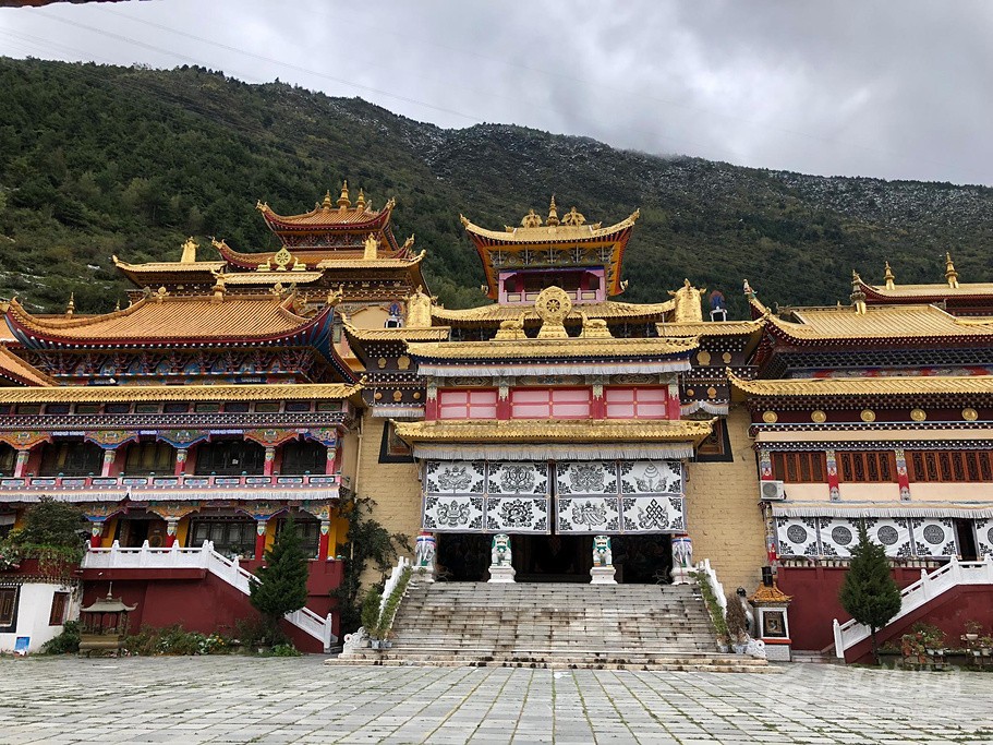 南無(wú)寺,藏名娜姆寺,傳說(shuō)為跑馬山仙女寺。位于康定城南2.5公里,是康區(qū)著名的寺廟之一,與毗鄰的金剛寺譽(yù)為“雙寺云林”,是康定古景之一。公元11世紀(jì),北宋年間建于今跑馬山,初為紅教,明末清初毀于戰(zhàn)火,后選址“竹覺(jué)崗”重建,清康熙16年(公元1677年),五世達(dá)賴(lài)阿旺羅桑嘉措贈(zèng)送宗喀巴大師和大威金剛、吉祥天母等佛像畫(huà),命名“呷登竹批林”為布達(dá)拉宮郎加扎窗支廟,清乾隆皇帝御書(shū)賜匾“南無(wú)寺”。