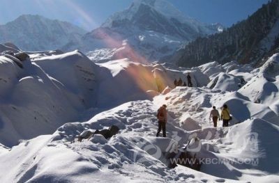 海螺溝冰川舌現(xiàn)長6公里,寬0.4-0.7公里,推算最厚100-130米,冰川大約形成于1600年以前。在冰川的運(yùn)動(dòng)中形成晶瑩如翡翠、水晶,觀賞價(jià)值極高的冰川弧拱、卷曲、單斜、向斜構(gòu)造成的冰川層紋單條裂縫長達(dá)100余米,深5-10米,寬0.5-2米的冰川斷裂帶,蔚為壯觀。在冰川的消融過程中形成了千姿百態(tài)的冰面湖、冰桌、冰洞與冰橋、冰面河,令游人贊不絕口。另外,源于主峰東南側(cè)海拔5600米以上的大雪山脈分水嶺,冰川的最低點(diǎn)海拔3000-3700米,可以供登山愛好者攀登。