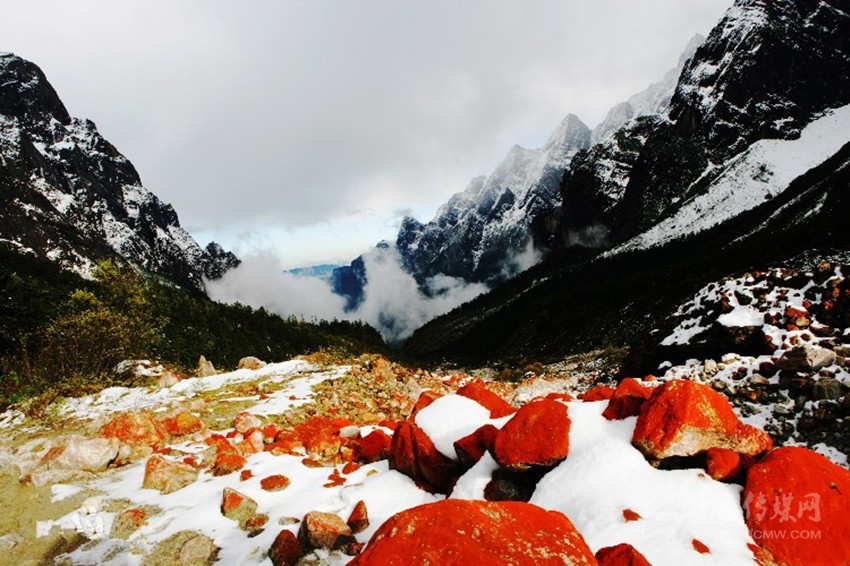 燕子溝最精華的景觀是紅石灘,此處為亞洲最大的紅石灘。石頭上布滿的紅色物質(zhì),是一種微生物,在高山特有的生態(tài)環(huán)境內(nèi)得以繁衍,構(gòu)成生命與歷史相融共存的奇特景觀。因?yàn)樯碁├锏氖^都長(zhǎng)了一層紅色的苔蘚,就好象沙灘里的石頭都穿上了喜慶的紅衣,使得燕子溝成了顏色的世界。據(jù)說(shuō)只有在空氣質(zhì)量很好的情況下,這種苔蘚才能夠生存,曾經(jīng)有研究院的科學(xué)家為將這種石頭帶出去研究,結(jié)果剛下飛機(jī),發(fā)現(xiàn)石頭上的紅色退了,因?yàn)榭諝赓|(zhì)量不好,導(dǎo)致石頭上的苔蘚無(wú)法生存。