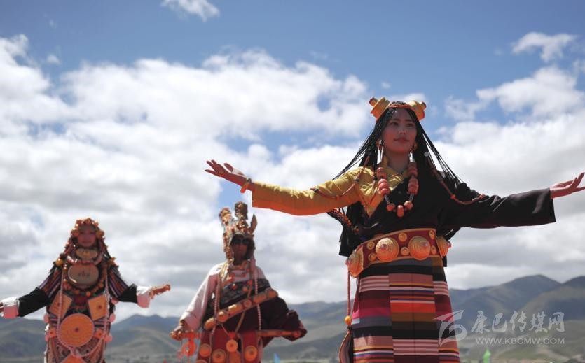 婦女的傳統(tǒng)服裝主是坎肩連衣百折裙。顏色有深絳、深紅、深綠等,上面印著孔雀翎眼彩花,折裙一展如孔雀開屏。上身著彩色襯衫,外套一件齊膝開襟的長衣,其領(lǐng)子、坎肩、大襟、袖口和底邊均鑲有彩色金絲料或水獺皮、豹皮等裝飾,腰間束一條彩帶,腰前圍一面彩色緞圍腰,并佩帶銀制或珊瑚制品等裝飾,同時耳掛金銀耳環(huán),頸戴寶石項珠,手腕戴銀圈、玉圈,手指戴金戒、銀戒,腳穿白色藏靴,顯得艷麗、俊俏、大方。
